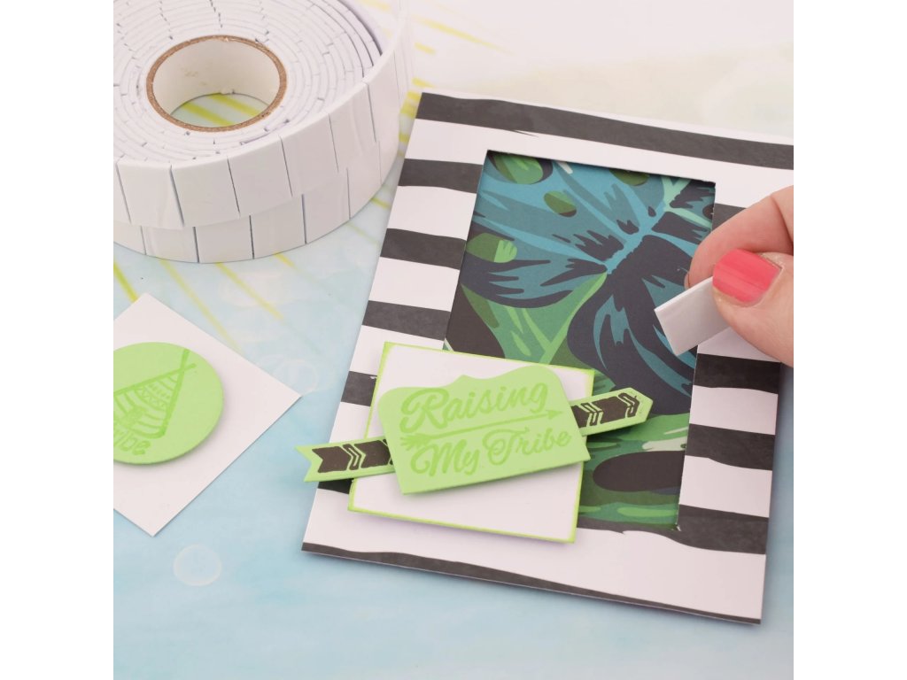 3D pěnová samolepicí páska předřezaná na praktické obdelníky. Praktická pomůcka pro scrapbooking, cardmaking a další kreativní tvoření. S pěnovou páskou snadno vytvoříš prostorový (3D) efekt na přáních, scrapbookových stránkách nebo jiných papírových projektech.