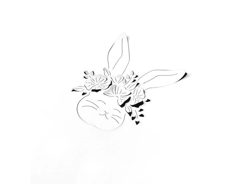 Alexandra Renke vyřezávací šablona negativní - Zajíček s květinami