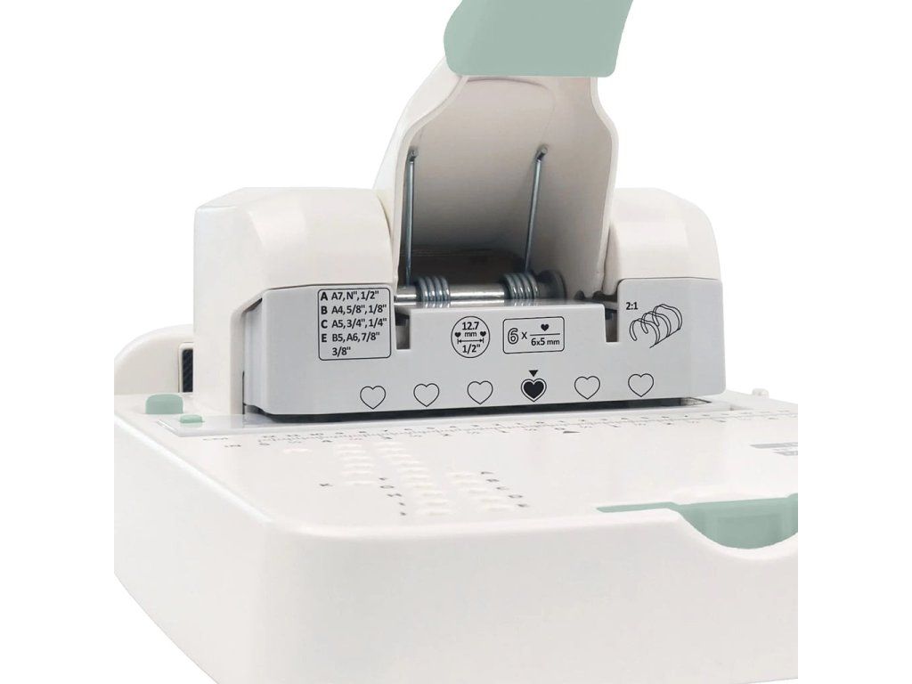 Kazety ve strojku snadno vyměníš a máš tak několik nástrojů v jednom. Kazeta prorazí najednou až 10 listů běžného kancelářského papíru (80 gsm). Skvělý pomocník na domácí tvoření, ať už vyrábíš zápisníky, diáře, bloky, scrapbooková fotoalba, minialba nebo kalendáře.