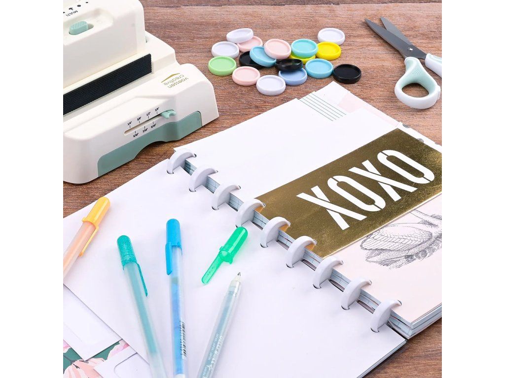 Kunststoffringe für ein Tagebuch oder zur Herstellung von Fotoalben mit Scheibenbindung.
