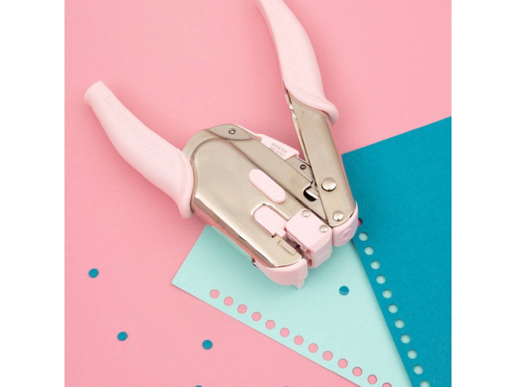 Velikost dírek je 0,5 cm. Výrobce uvádí, že velikost odsazení dírek je kompatibilní se spirálou 3:1, tedy že na jeden inch (tj. 2,54 cm) velkou tři celé dírky. Přeměřili jsme kleště ještě u nás a středy dírek jsou od sebe 0,85 mm.