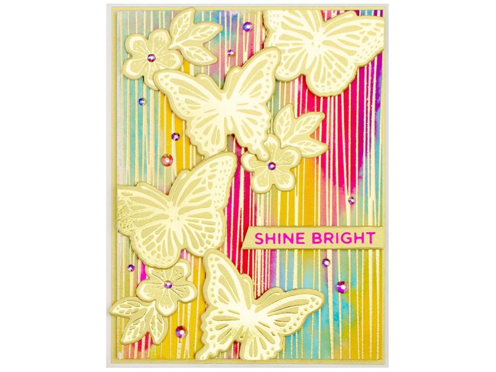 Die Platte wird in der HOT FOIL-Maschine erhitzt und dann zusammen mit Papier und Metallfolie in die Schneid- und Prägemaschine SPELLBINDERS oder BIGSHOT eingelegt, die nach dem Durchlaufen der Maschine im ausgewählten Motiv auf das Papier gedruckt wird.