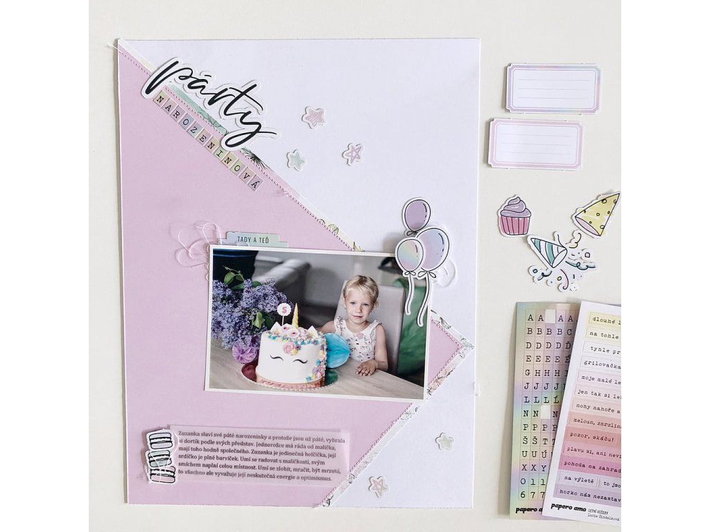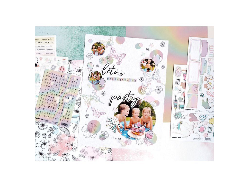Ein bisschen Funk. Viele kosmische Regenbögen. Und vor allem das unwiederholbare Gefühl eines lauen Sommerabends, an dem es Zeit ist, sich zu entspannen und gleichzeitig eine richtige Weihnachtsfeier zu veranstalten. Genießen Sie originelle Ausschnitte und Aufkleber. Mit diesem Set werden die Seiten Ihres Urlaubsalbums wieder zauberhaft aussehen. Sie können das Material auch für Grußkarten oder die Verzierung eines Tagebuchs verwenden. Oder für jedes andere Papierprojekt.