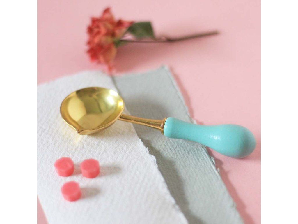 Ein Löffel zum Erhitzen von Siegellack. Der Löffel hat einen Holzgriff.