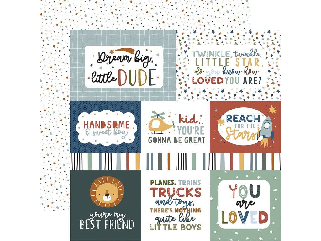 Scrapbook papír - DRAEM BIG LITTLE BOY / Journaling Cards