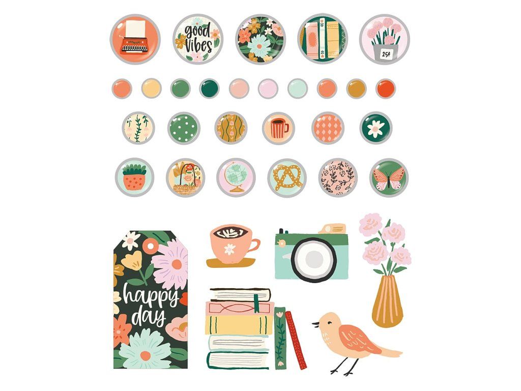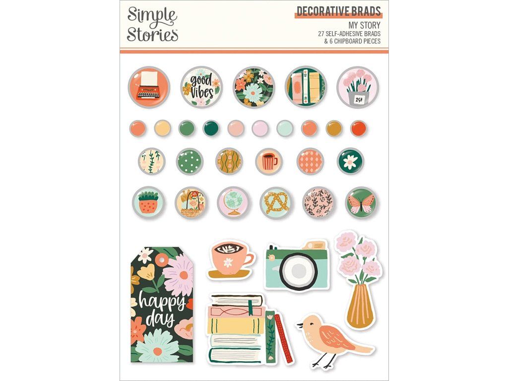 Balení obsahuje 27 ks samolepících brads a 5 chipboardových kousků.