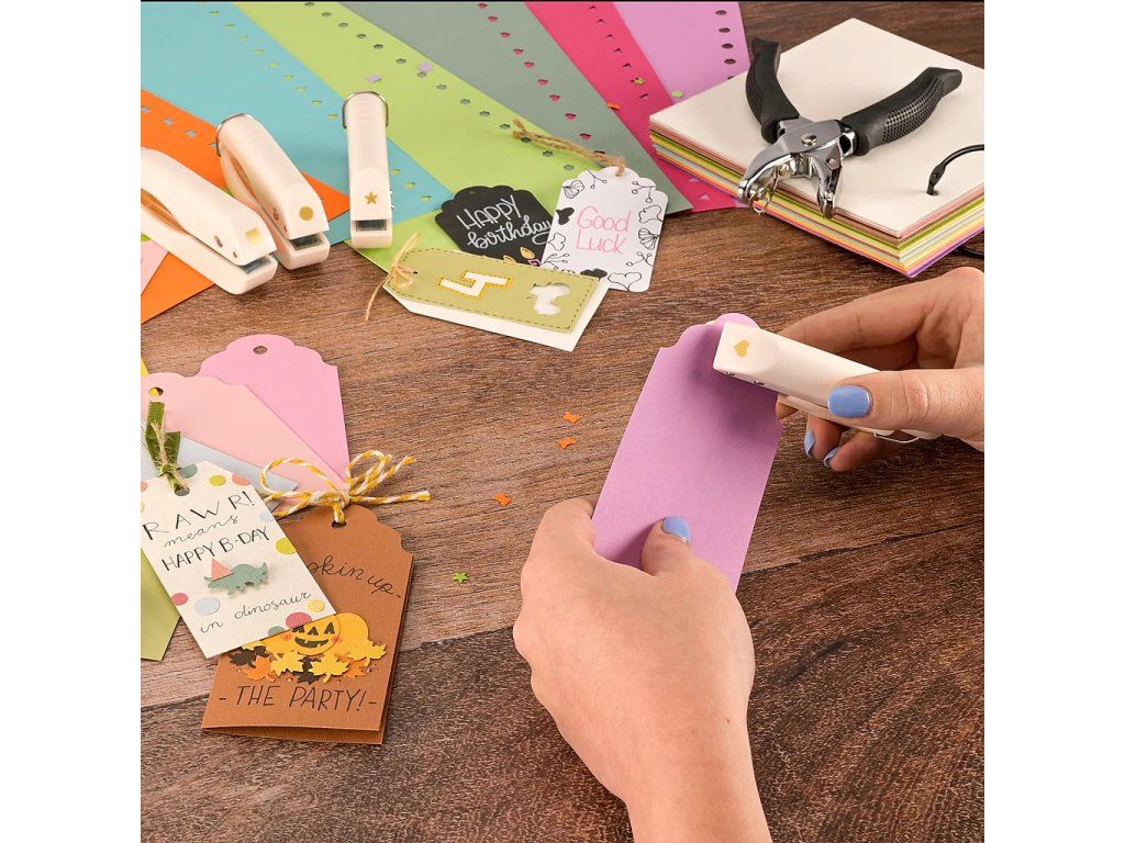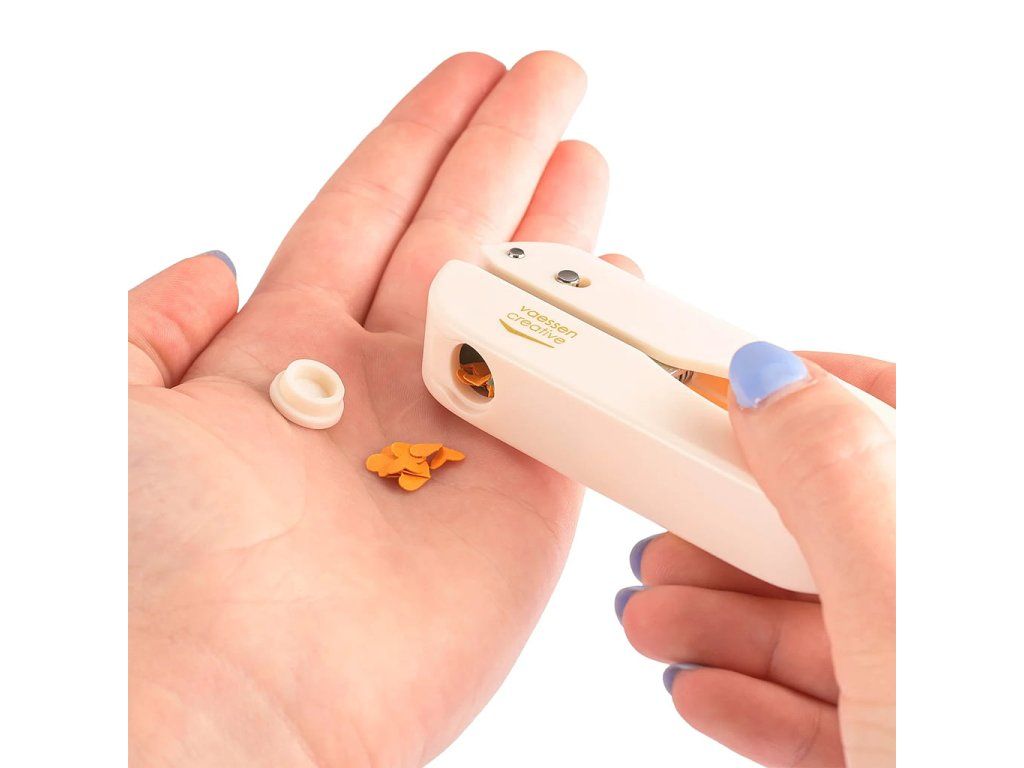 S touhle šikovnou děrovačkou od Vaessen Creative snadno vyrazíš malé otvory ve tvaru hvězdy do papíru, kartonu nebo pauzáku. Funguje jako kleště, stačí vložit papír mezi čelisti a jedním stiskem vytvoříš přesný otvor. Výsek můžeš použít jako ozdobu, nebo využít samotný otvor třeba při tvorbě přáníček, scrapbooků, děrování dárkových visaček a na další kreativní projekty.