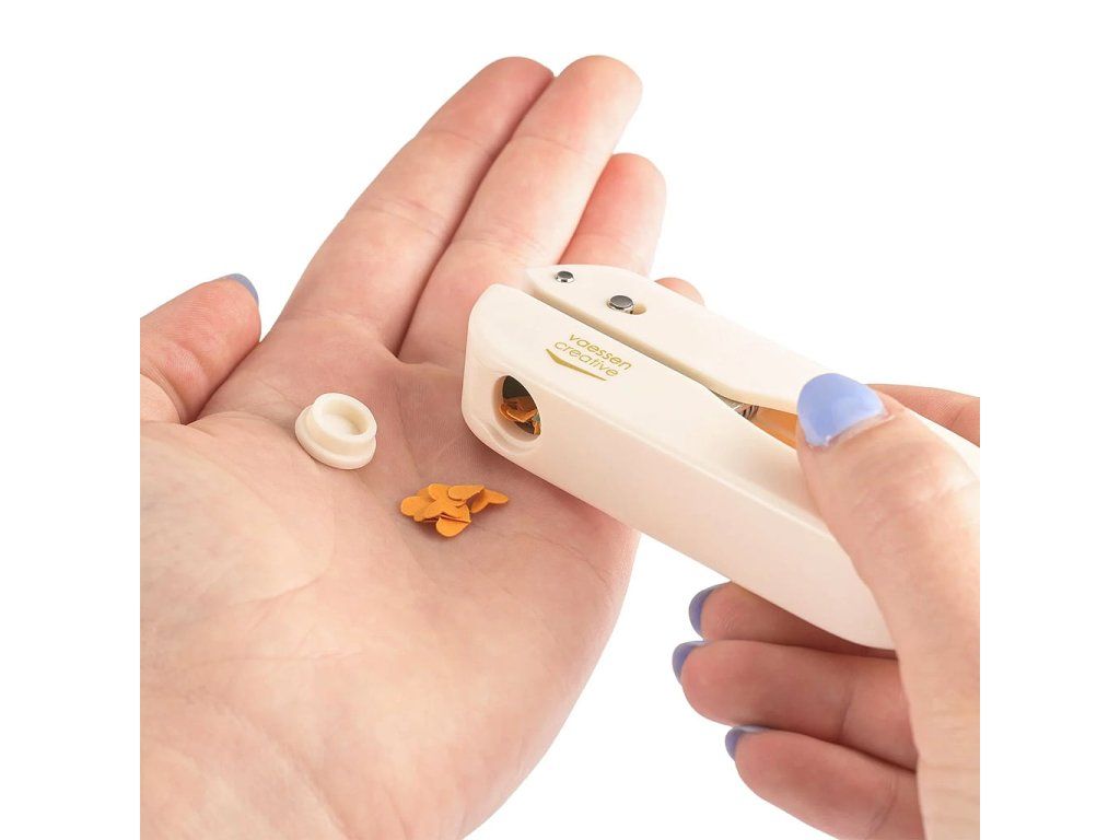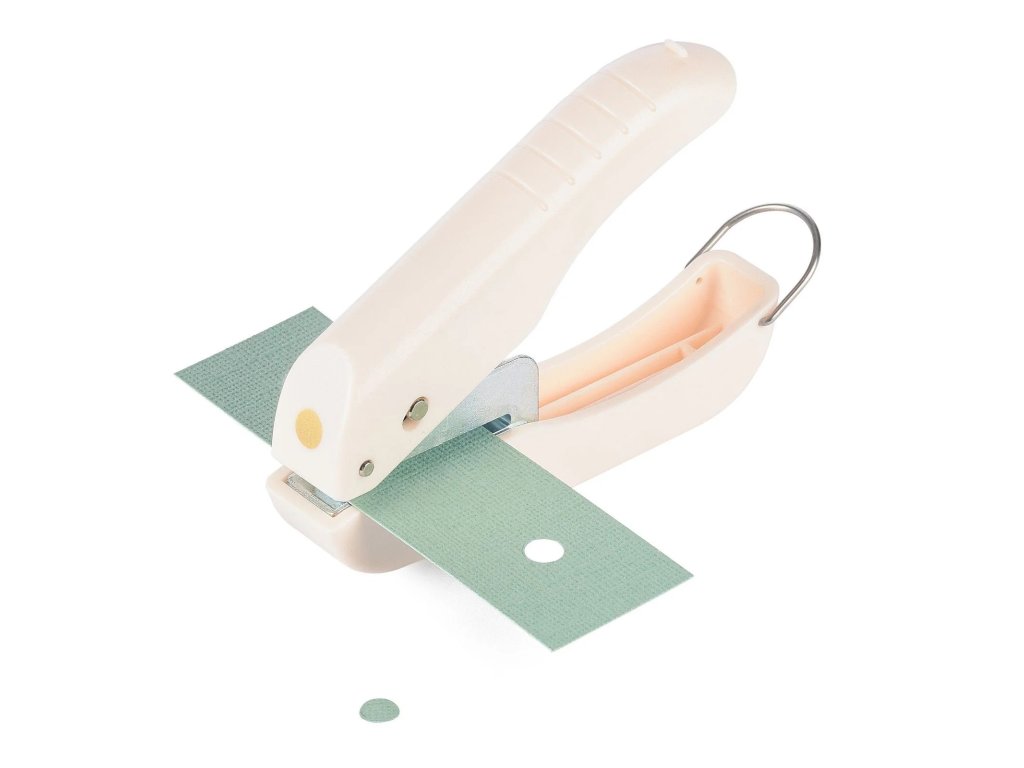 S touhle šikovnou děrovačkou od Vaessen Creative snadno vyrazíš malé kulaté otvory do papíru, kartonu nebo pauzáku. Funguje jako kleště, stačí vložit papír mezi čelisti a jedním stiskem vytvoříš přesný otvor. Výsek můžeš použít jako ozdobu, nebo využít samotný otvor třeba při tvorbě přáníček, scrapbooků a dalších projektů.