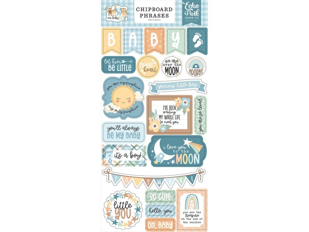 Chipboardové samolepky - OUR BABY BOY / Fráze