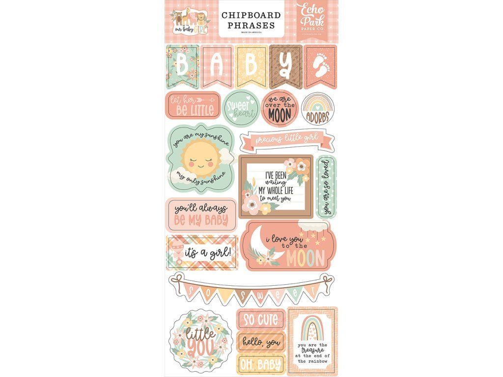 Chipboardové samolepky - OUR BABY GIRL / Fráze