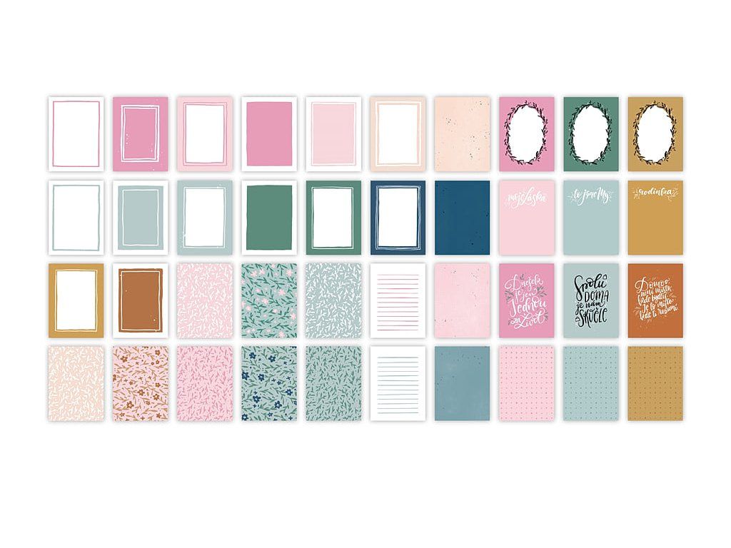 Designové kartičky pro scrapbooking, kapsové stránky nebo diáře z kolekce SPOLU DOMA.