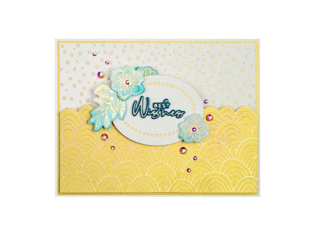 The plate is heated in the HOT FOIL machine and then inserted into the SPELLBINDERS or BIGSHOT cutting and embossing machine together with paper and metallic foil, which, after passing through the machine, is printed on the paper in the selected motif.