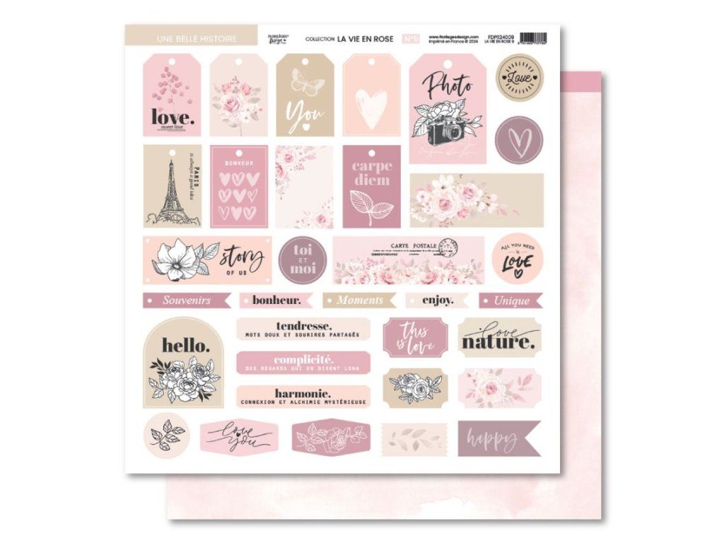 Sada barevných papírů 12"x12" - LA VIE EN ROSE