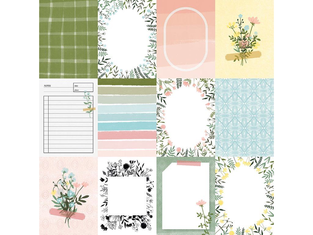 Scrapbook paper with spring motives suitable for mini albums, scrapbook pages, greeting cards and project life pages.
