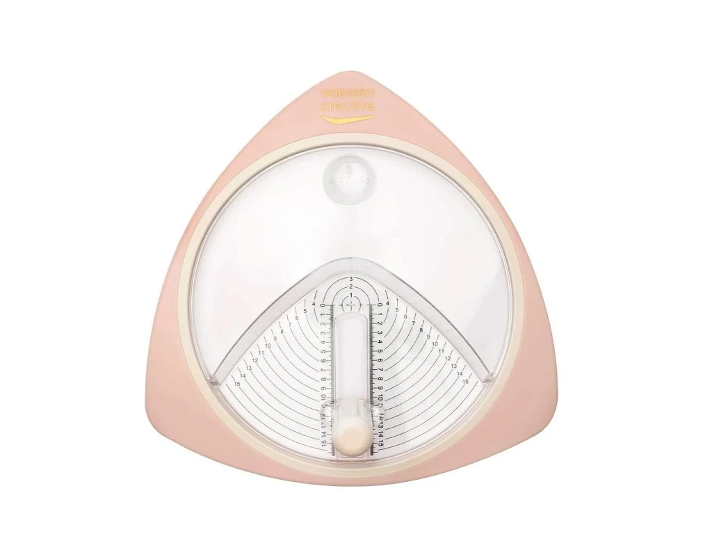 Cut perfect circles from 2.5cm to 15cm in diameter quickly and easily with this circle cutter from Vaessen Creative. The circular cutter is perfect for all your paper projects, such as art workshops with kids, making colorful paper flowers and more. This circular cutter is suitable for cutting paper up to 250 g/m2, cardboard, foam up to 2 mm, shrink film and much more. The diameter is easily adjustable and the easy-to-grip handle lets you cut beautiful circles effortlessly. The circular cutter stays in place during use thanks to the non-slip base. In case the blade is no longer sharp enough, three spare blades are safely stored under the lid on the underside. The circular cutter comes with a practical instruction booklet. We also offer a mint color.