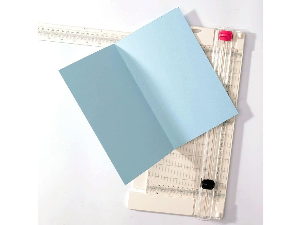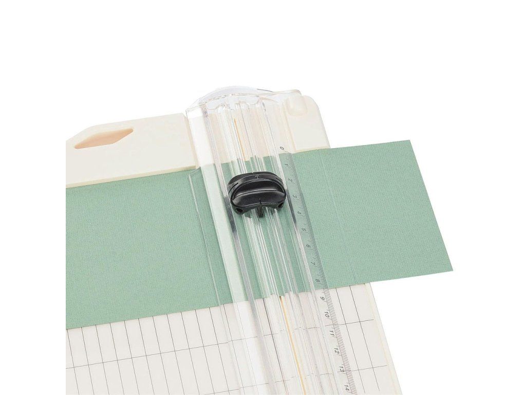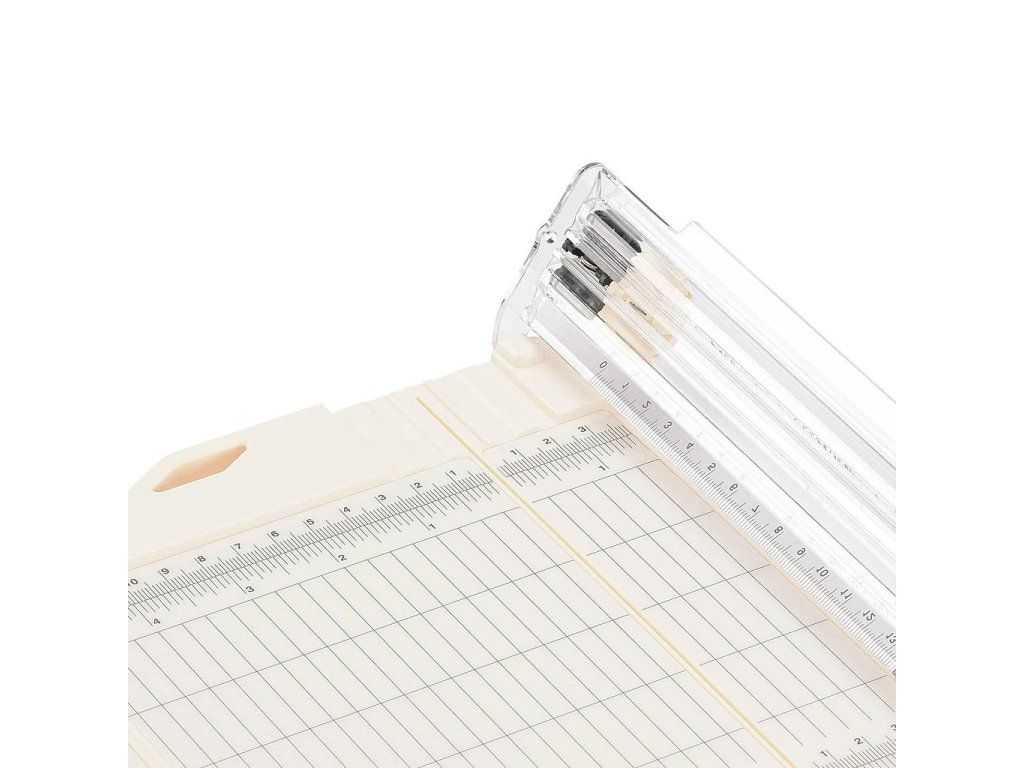 This paper cutter with creasing function has a wide base of 15.2 cm from the cut line and a folding ruler up to 43 cm. Easily and precisely cut or score papers and photos. The dimensions on the paper cutter are in both cm and inches. We also have a cutter and a groover in the pink and green colors.