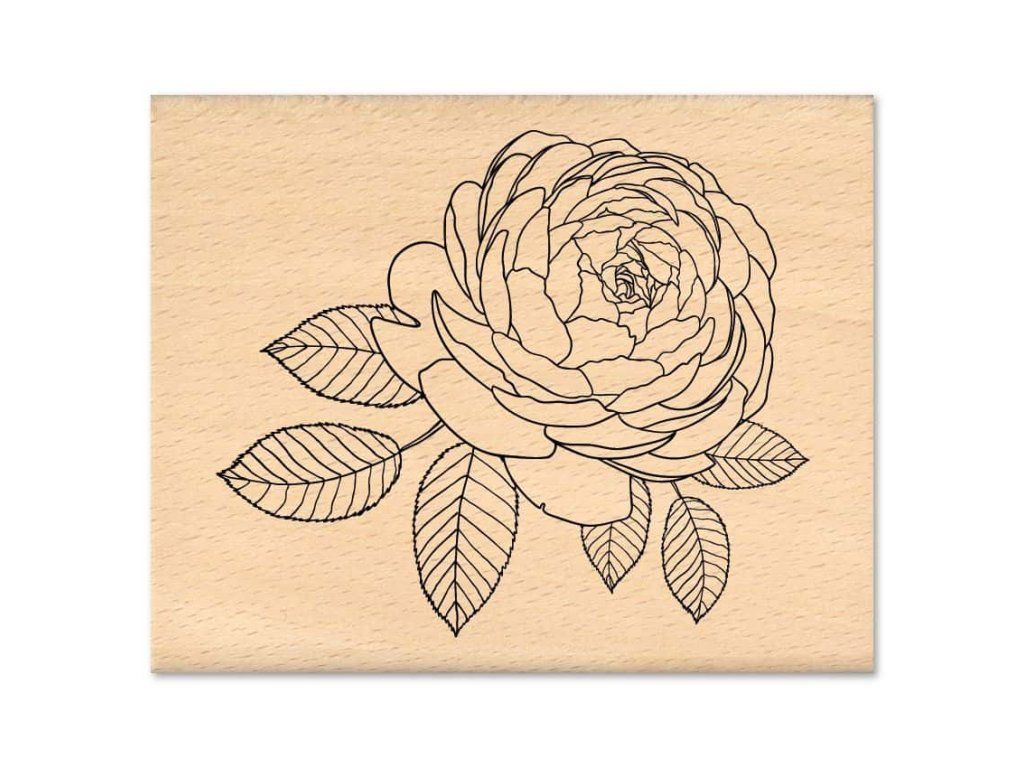 Gumové razítko na dřevěném štočku z kreativní sady Murmures francouzské značky Floriléges Design. Motiv růže je natištěný na dřívku. Guma s razítkovacích motivem je přilepena na dřívko. Razítka jsou skvělá na ozdobení přáníček, fotoalb, diáře nebo na journaling a jiné tvoření.