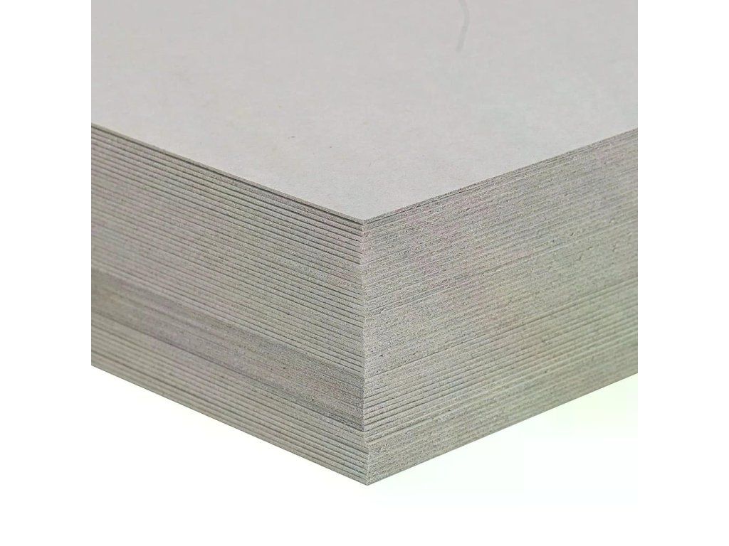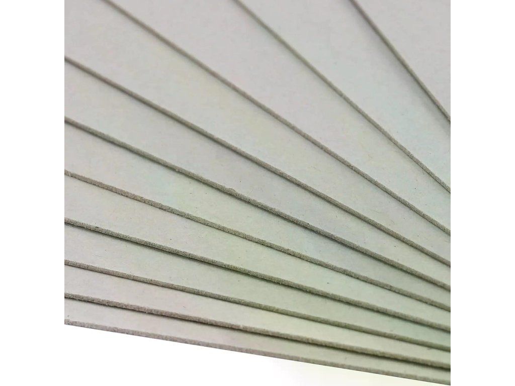 Pevná šedá kartonová deska, tloušťka 2 mm, vhodná pro výrobu obalů, deníků, knih a krabiček.