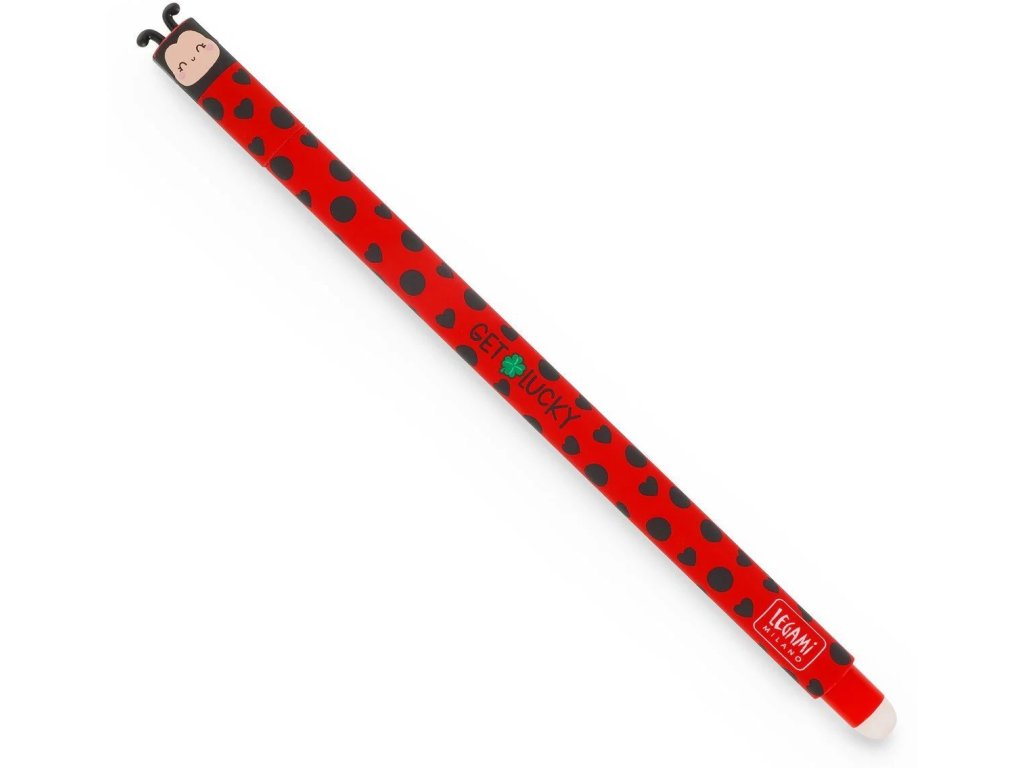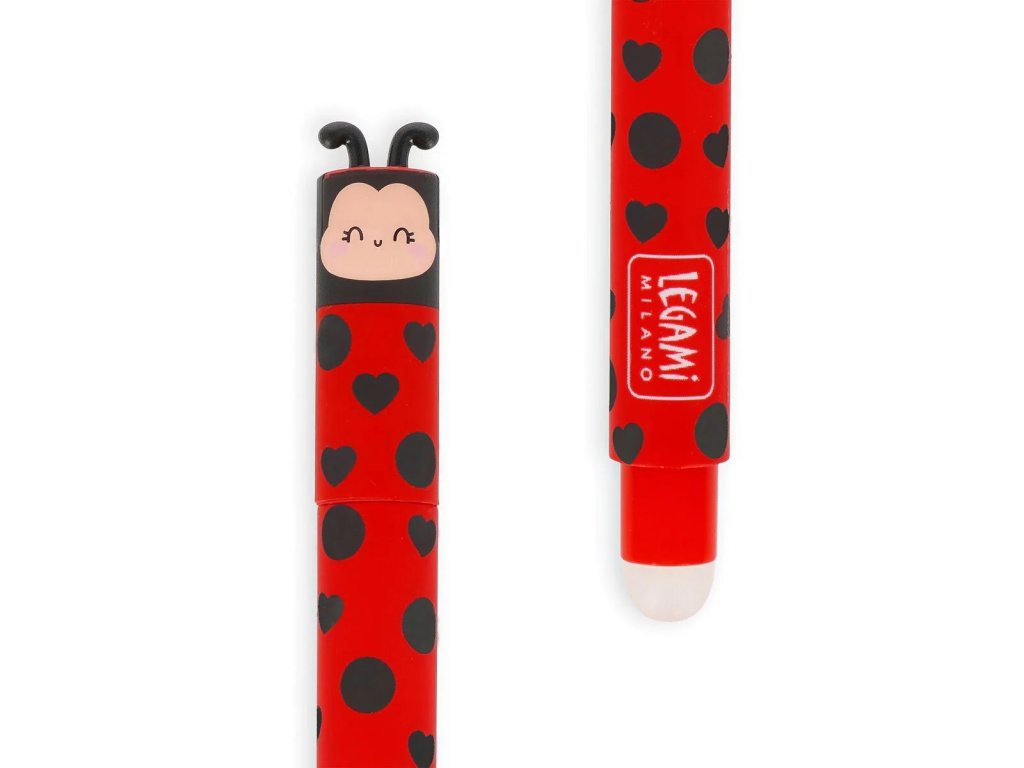 Gelové pero Legami Erasable Pen umožňuje psát bez obav z chyb. Napsaný text lze jednoduše vymazat gumou na konci pera a pokračovat v psaní bez šmouh nebo poškození papíru. Ideální do školy, kanceláře i pro každého, kdo chce psát bez škrtání a opravné pásky. Roztomilý design berušky dělá z tohoto pera krásného pomocníka do školního pouzdra.