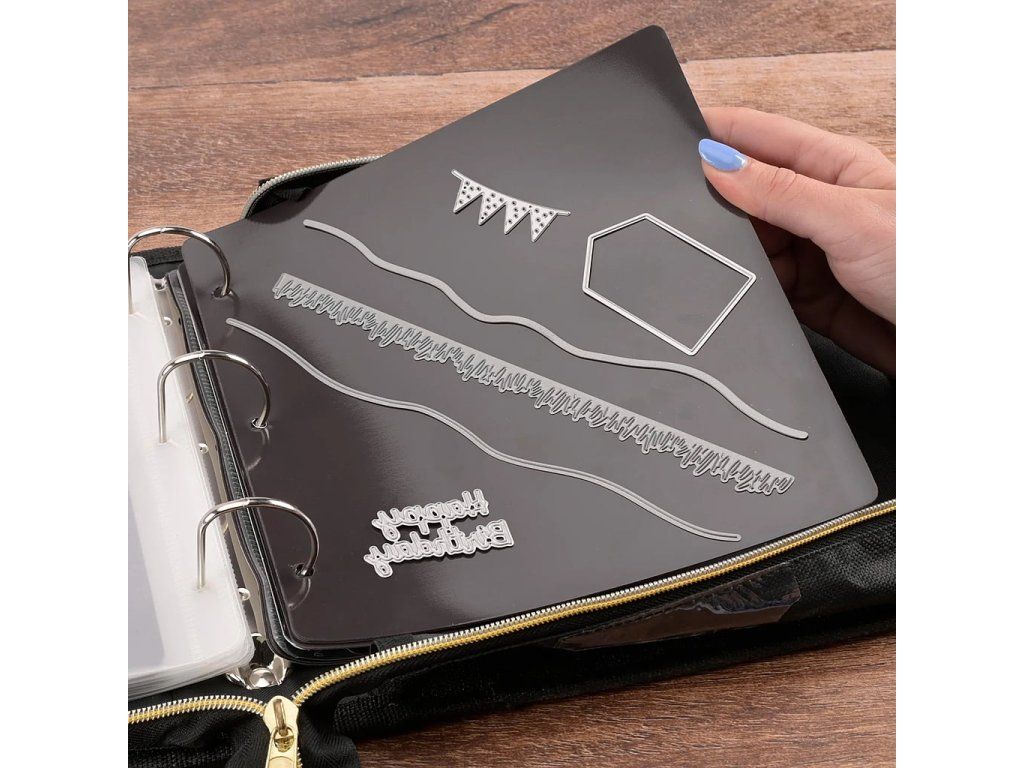 Praktické listy pro uskladnění kovových vyřezávacích šablon. Listy mají rozměr 20 x 20 cm a pasují do pořadače Vaessen Creative s třemi kroužky. Díky magnetickému povrchu šablony drží na místě a nehrozí jejich poškození ani pohyb. Jednoduché a praktické řešení pro pořádek ve tvé sbírce vyřezávaích šablon.