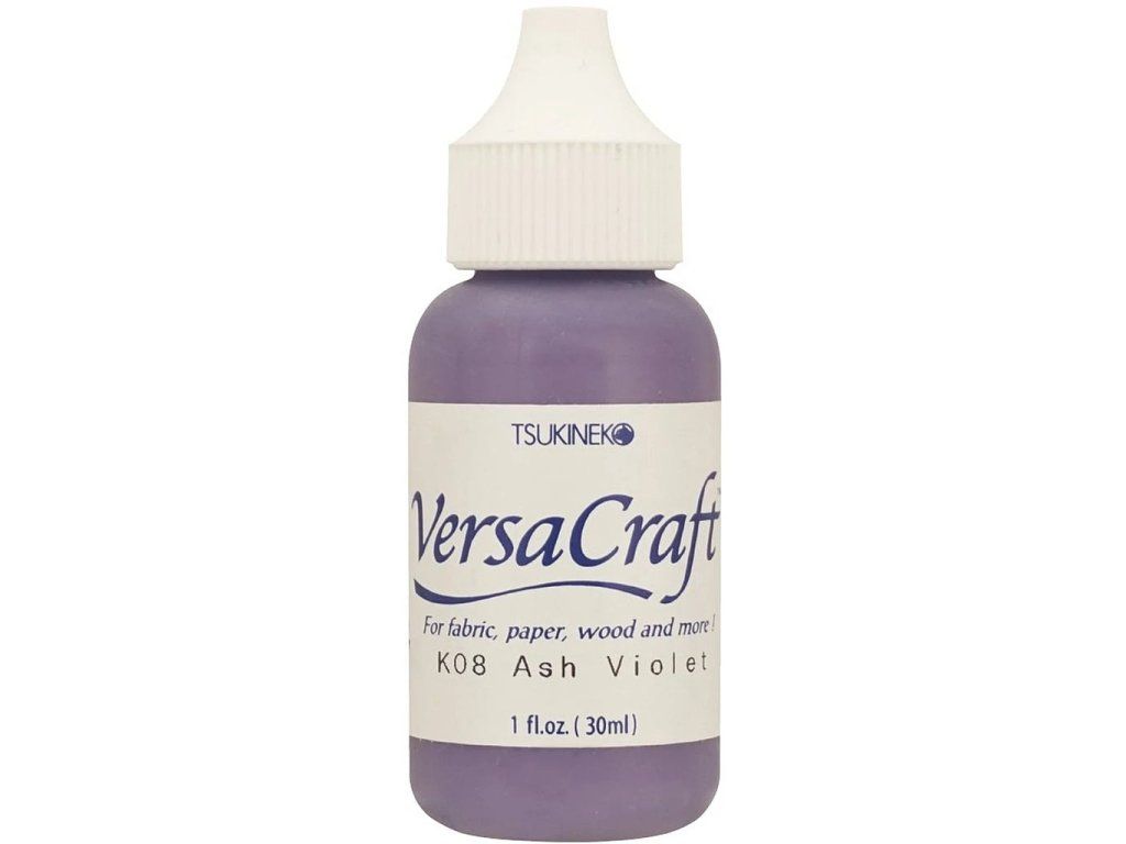 Inkoustová náplň (reinker) pro razítkovací podušku Tsukineko Versa Craft Ash Violet. Inkoust je vhodný na papír, nelakované dřevo, textil nebo neglazovanou keramiku.