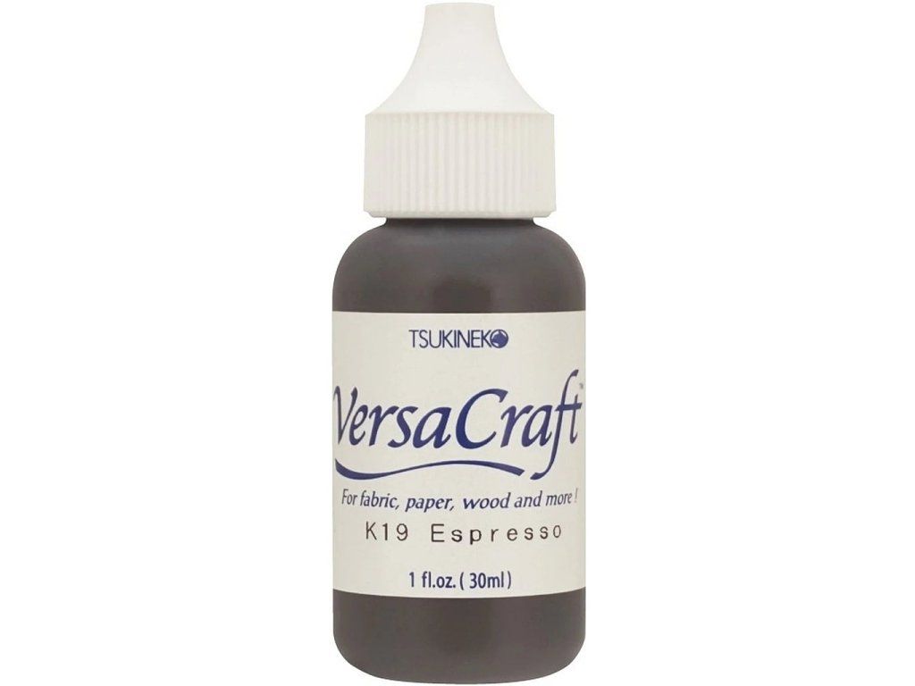 Inkoustová náplň (reinker) pro razítkovací podušku Tsukineko Versa Craft Espresso. Inkoust je vhodný na papír, nelakované dřevo, textil nebo neglazovanou keramiku.