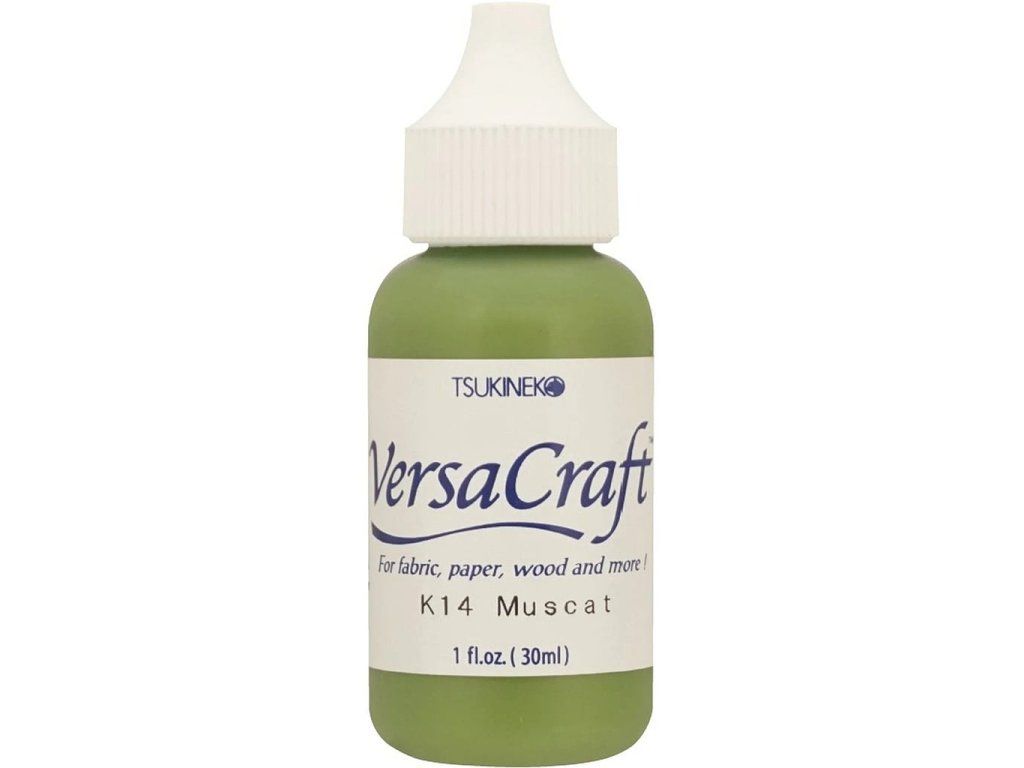Inkoustová náplň (reinker) pro razítkovací podušku Tsukineko Versa Craft Muscat. Inkoust je vhodný na papír, nelakované dřevo, textil nebo neglazovanou keramiku.