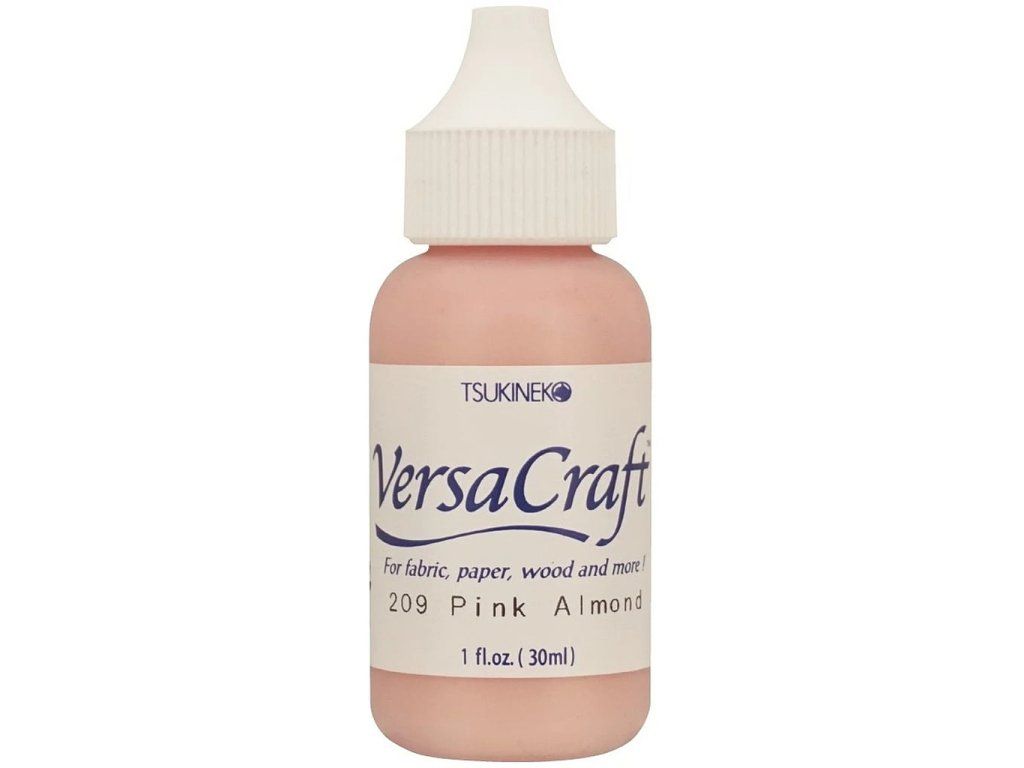 Inkoustová náplň (reinker) pro razítkovací podušku Tsukineko Versa Craft Pink Almond. Inkoust je vhodný na papír, nelakované dřevo, textil nebo neglazovanou keramiku.