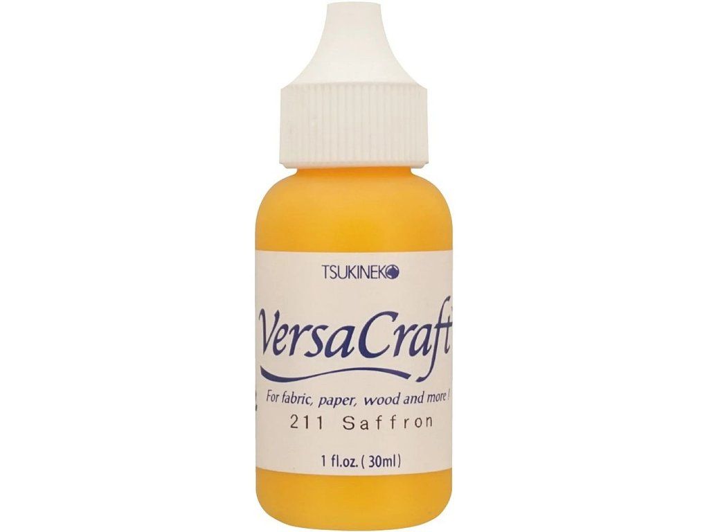 Inkoustová náplň (reinker) pro razítkovací podušku Tsukineko Versa Craft Saffron. Inkoust je vhodný na papír, nelakované dřevo, textil nebo neglazovanou keramiku.