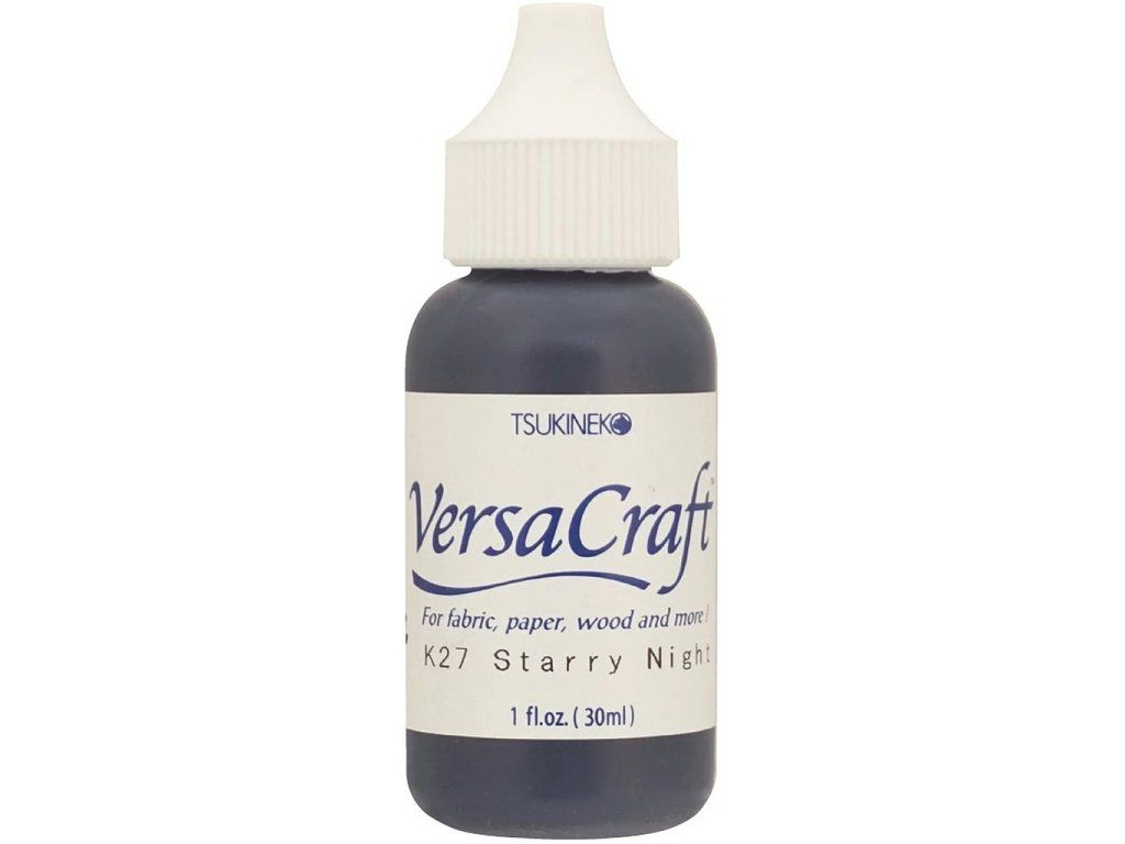 Inkoustová náplň (reinker) pro razítkovací podušku Tsukineko Versa Starry Night. Inkoust je vhodný na papír, nelakované dřevo, textil nebo neglazovanou keramiku.