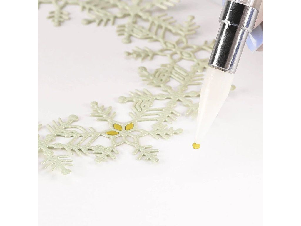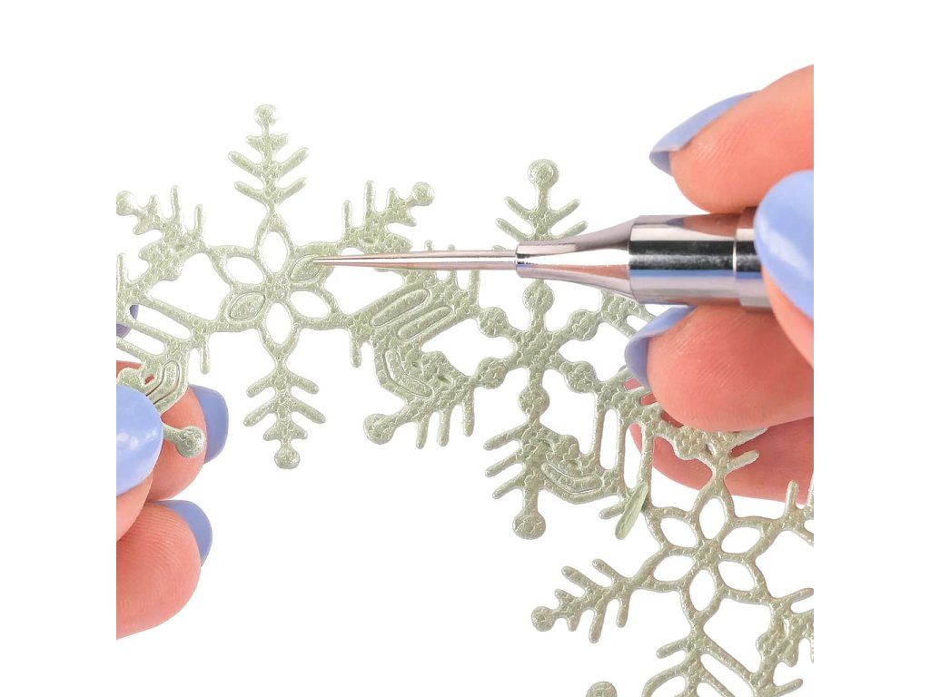 Oboustranné pero Vaessen Creative je nepostradatelný pomocník pro všechny, kteří rádi tvoří z papíru. Na jedné straně se nachází propichovací hrot, se kterým snadno a přesně vytvoříte otvory do papíru, kartonu nebo pěnovky. Skvěle poslouží také k odstranění drobných zbytků papíru, které zůstávají v šablonách nebo vyřezávacích šablonách. Na druhé straně pera je lepivý hrot s jemně přilnavým povrchem, díky kterému snadno naberete malé a jemné dekorace, jako jsou kamínky, flitry, perličky, drobné papírové výseky a jiné ozdoby, a přesně je umístíte na požadované místo.