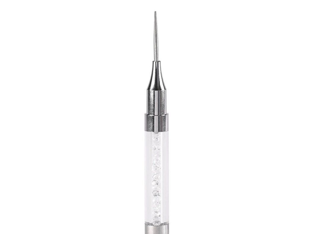 Pero je dlouhé cca 18 cm, vyrobené z pevného kovu, s dekorativní výplní z drobných třpytivých kamínků a pohodlně padne do ruky.