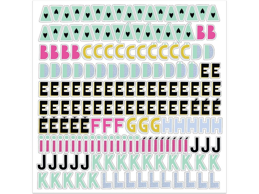 SADA obsahuje 3 archy velikosti 30 x 30 cm písmenek a znaků české abecedy