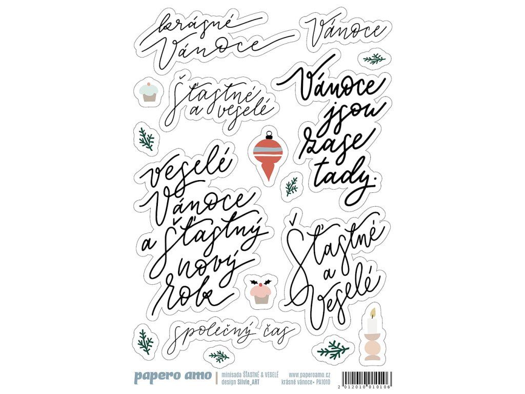 ČESKÉ VÁNOČNÍ samolepky pro tvé papírové tvoření.