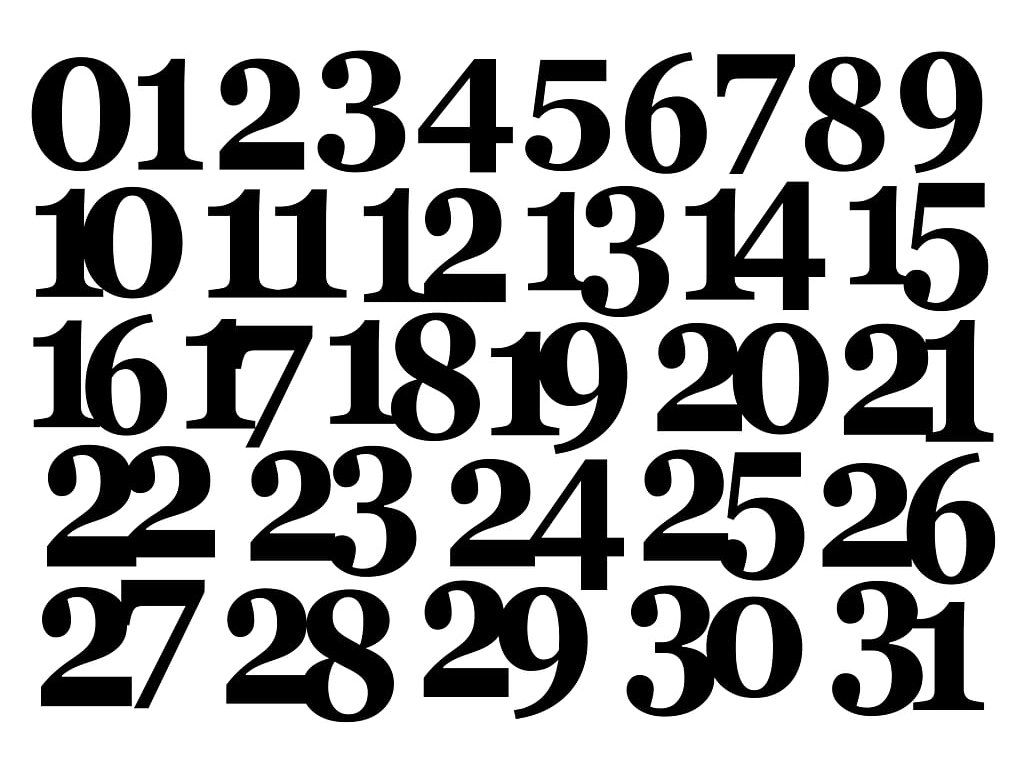 Čísla v balení - 0 až 31. Skvělé na adventní album, narozeninová přání, do fotoalba na značení dnů, atd.