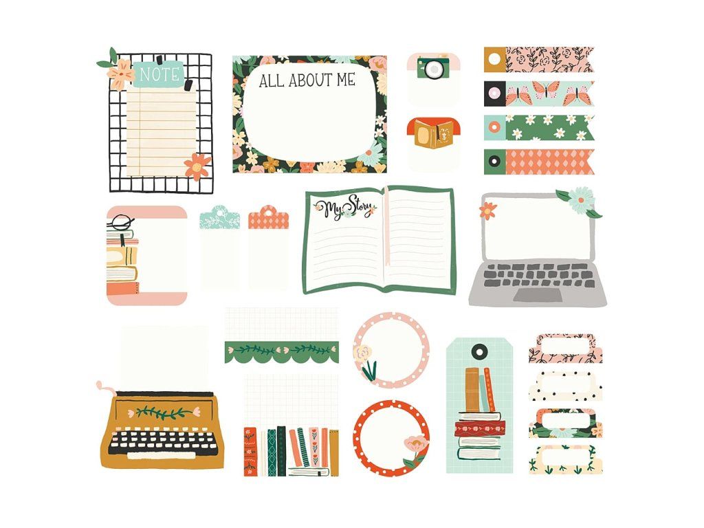 Papírové ozdoby pro scrapbooking, cardmaking a project life.