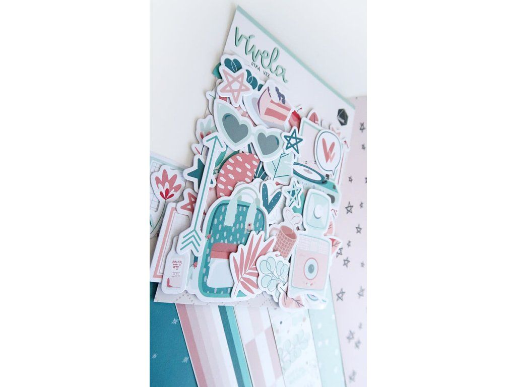 Sada papírových výseků z kolekce Vívela Otra Vez od španělské značky Dunaon. Skvělé na tvoření z papíru - výrobu přáníček, fotoalb, deníků, do diáře a na další projekty.