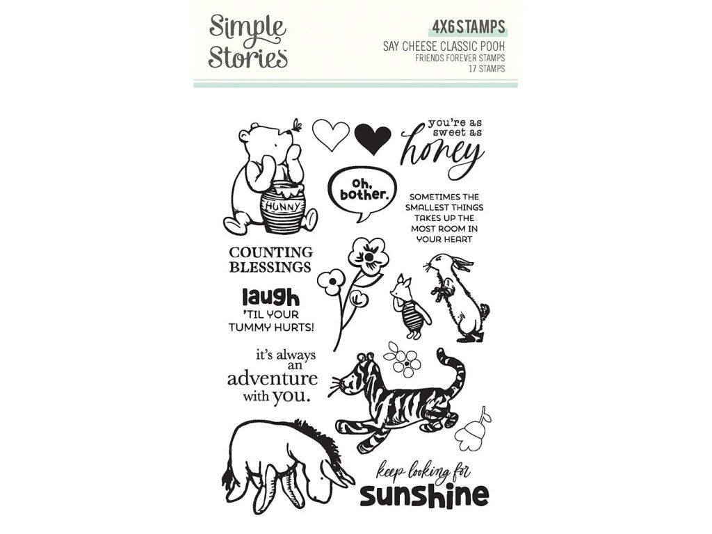 Sada průhledných polymerových razítek s motivy ze světa Medvídka Pú. Ideální na scrapbooking, cardmaking, Project Life a další kreativní tvoření z papíru a tvoření s dětmi.