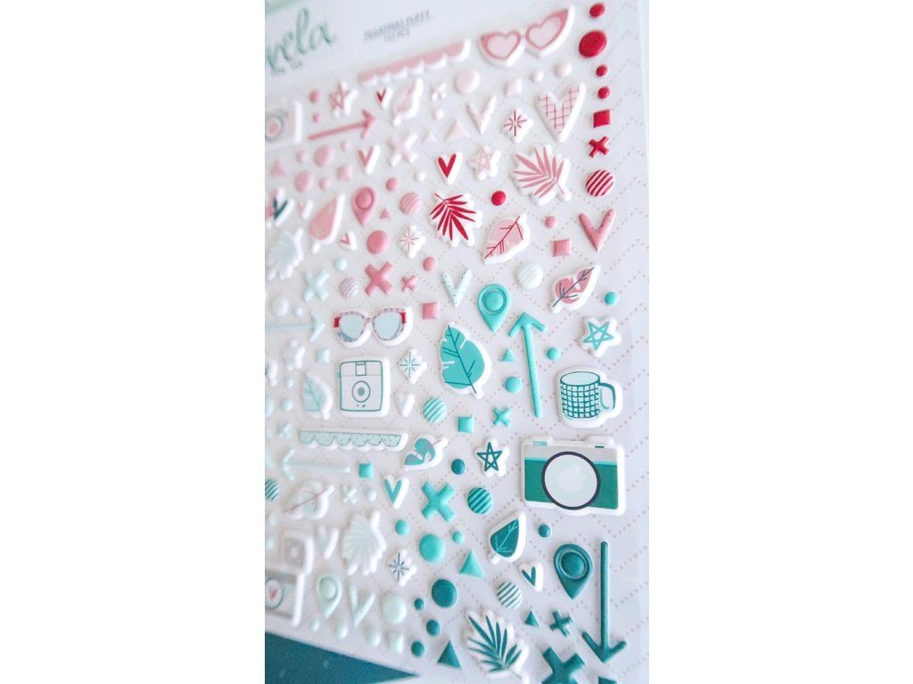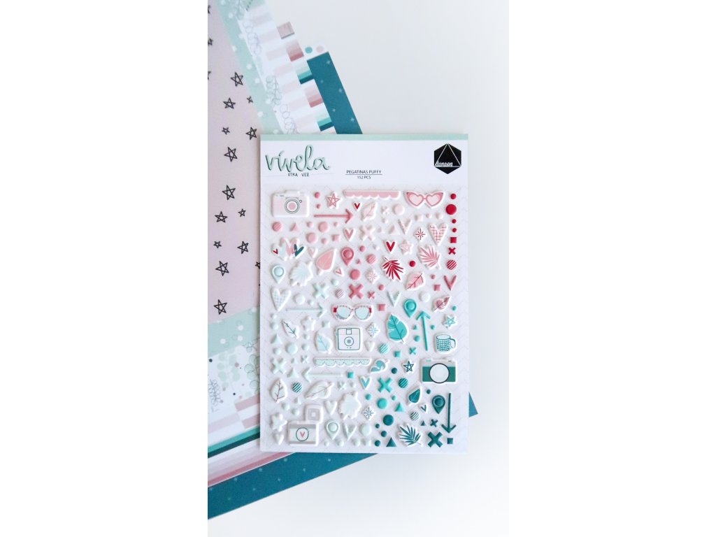Kvalitní puffy plastické samolepky s obrázkovými motivy od španělské značky Dunaon z kolekce Vívela Otra Vez.