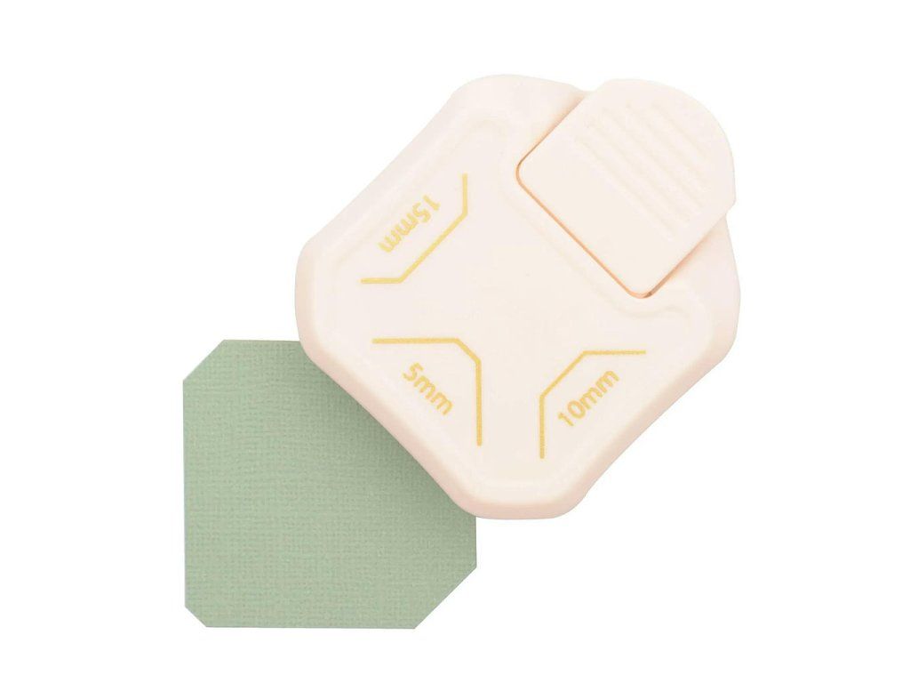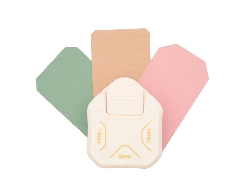 S tímto zaoblovačem rohů můžete vyrazit tři velikosti diagonálních rohů pouze jedním nástrojem. Vyrazte malý roh (5 mm), střední roh (10 mm) nebo velký roh (15 mm) jednoduše otočením razníku o čtvrt otáčky. Díky třem různým velikostem této rohové děrovačky poskytuje jediný nástroj spoustu možností pro použití s papírem, kartonem, fotografiemi a dalšími. Dejte rohům svých vizitek, pozvánek, fotografií, pohlednic, stránek sešitů a dalších papírových projektů stylový šikmý povrch. Rohový razník se snadno používá a razí přesné, diagonální rohy.