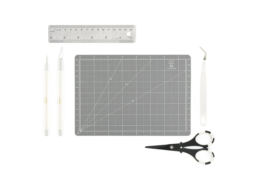 - Hobby skalpel a precizní nůžky pro čisté řezy.