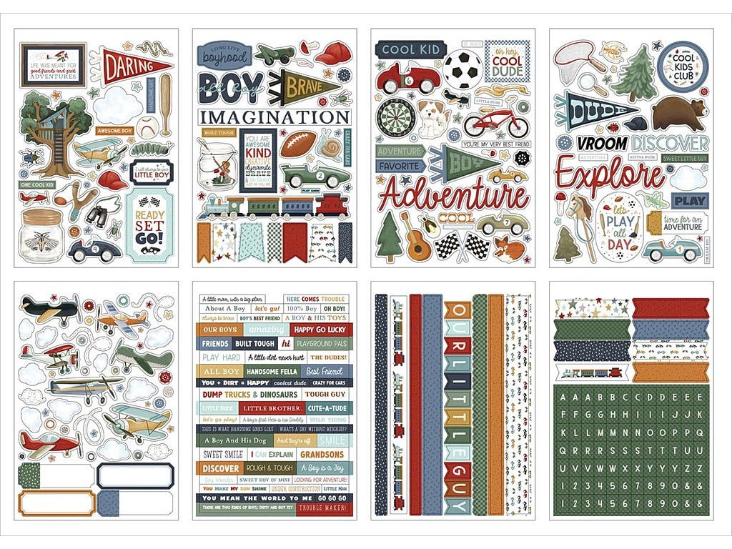Sada papírových samolepek s dětskými motivy z kolekce That's my Boy. Ideální na scrapbooking, Project life, carmaking, výrobu přáníček a další tvoření z papíru.