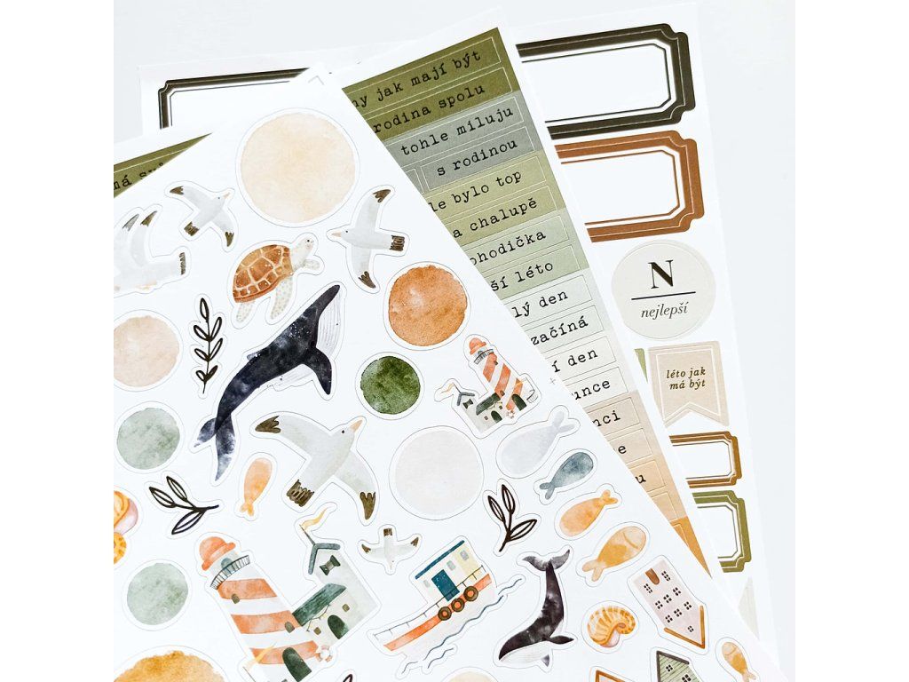 České samolepky pro tvé papírové tvoření, vhodné na scrapbooking, cardmaking, na zdobení fotoalb, cestovních deníků a diářů.