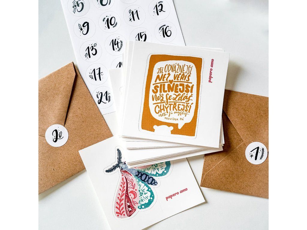 ČESKÉ samolepky pro tvé papírové tvoření. Sada obsahuje číslovky 1-24 ideální na výrobu adventních kalendářů. Snadno a rychle očísluješ pytlíčky, obálky nebo krabičky.