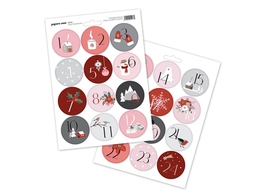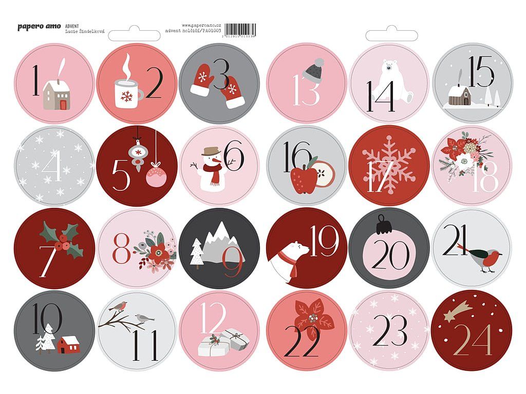 ČESKÉ SAMOLEPKY na adventní kalendář pro holky.