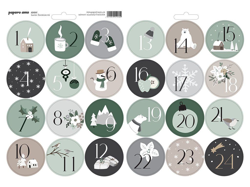 Sada samolepek na výrobu ADVENTNÍHO KALENDÁŘE pro děti.