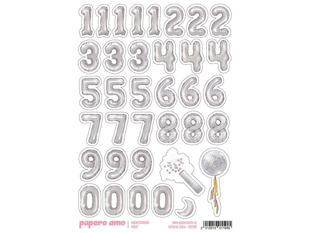 Samolepky - NAROZENINOVÁ PÁRTY / Stříbrná čísla