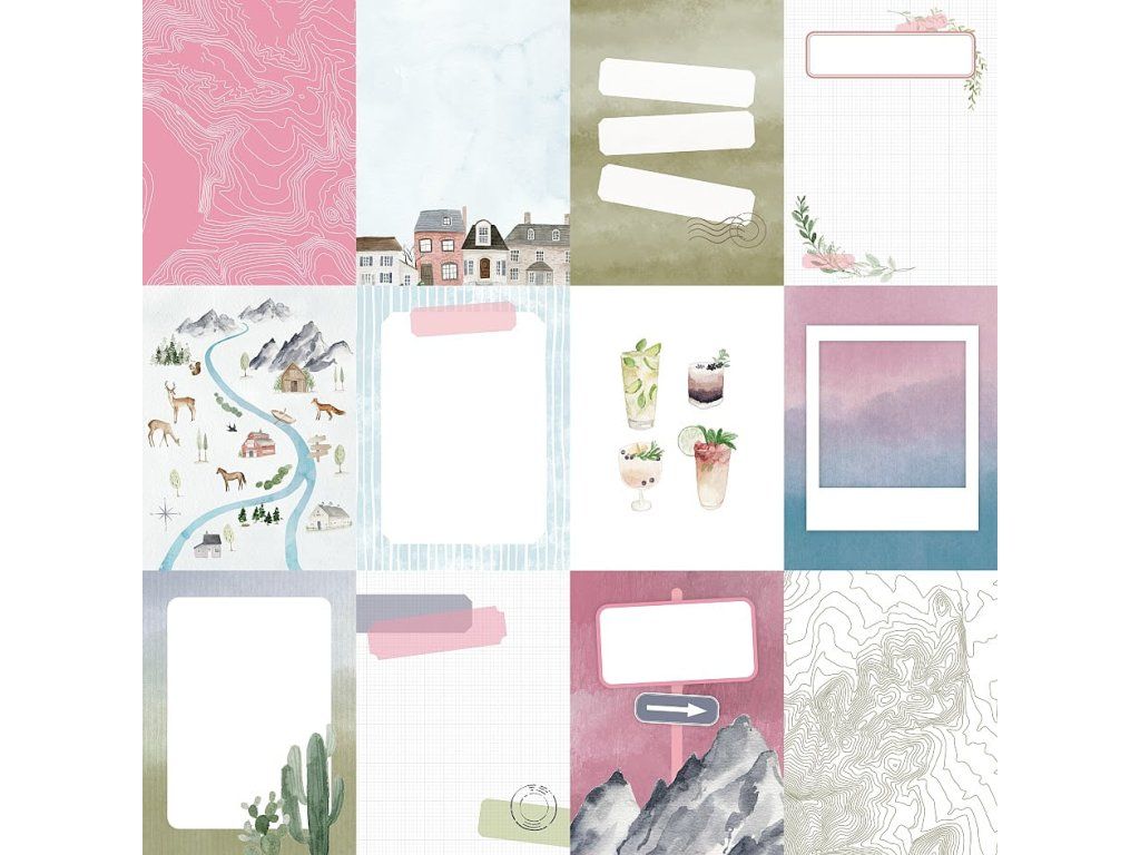 Papír na scrapbook s cestovními motivy vhodný na minialba, scrapbookové stránky, přáníčka a project life stránky.