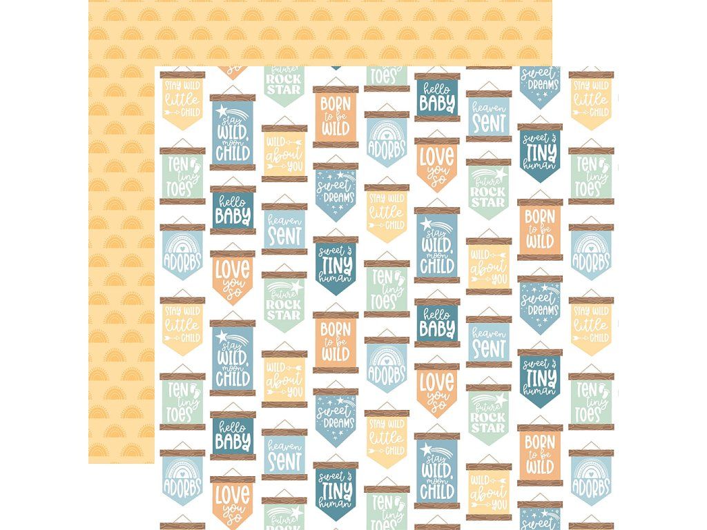 Papír na scrapbook s baby dětskou tematikou vhodný na minialba, scrapbookové stránky, přáníčka a project life stránky.