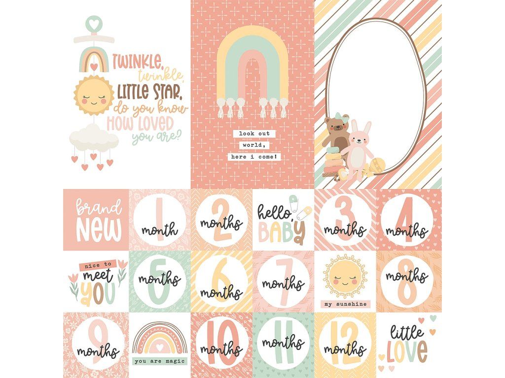 Papír na scrapbook s baby dětskou tematikou vhodný na minialba, scrapbookové stránky, přáníčka a project life stránky.